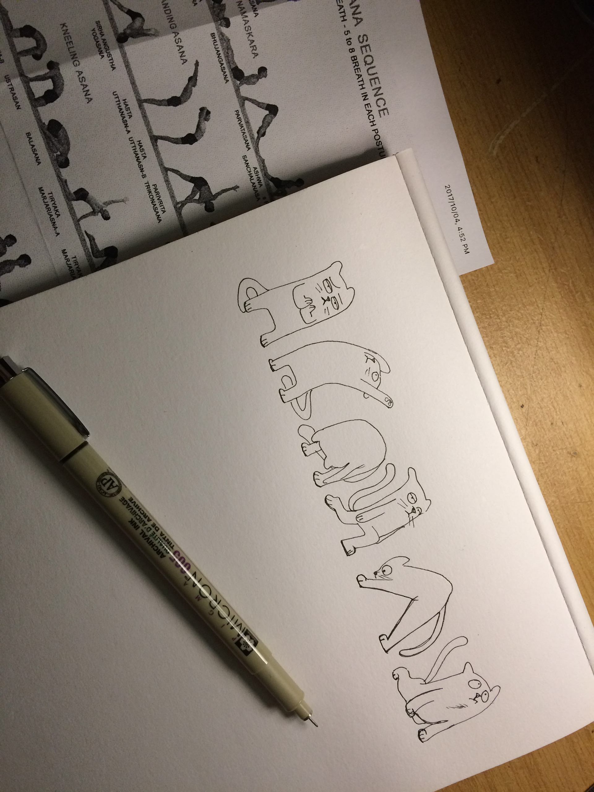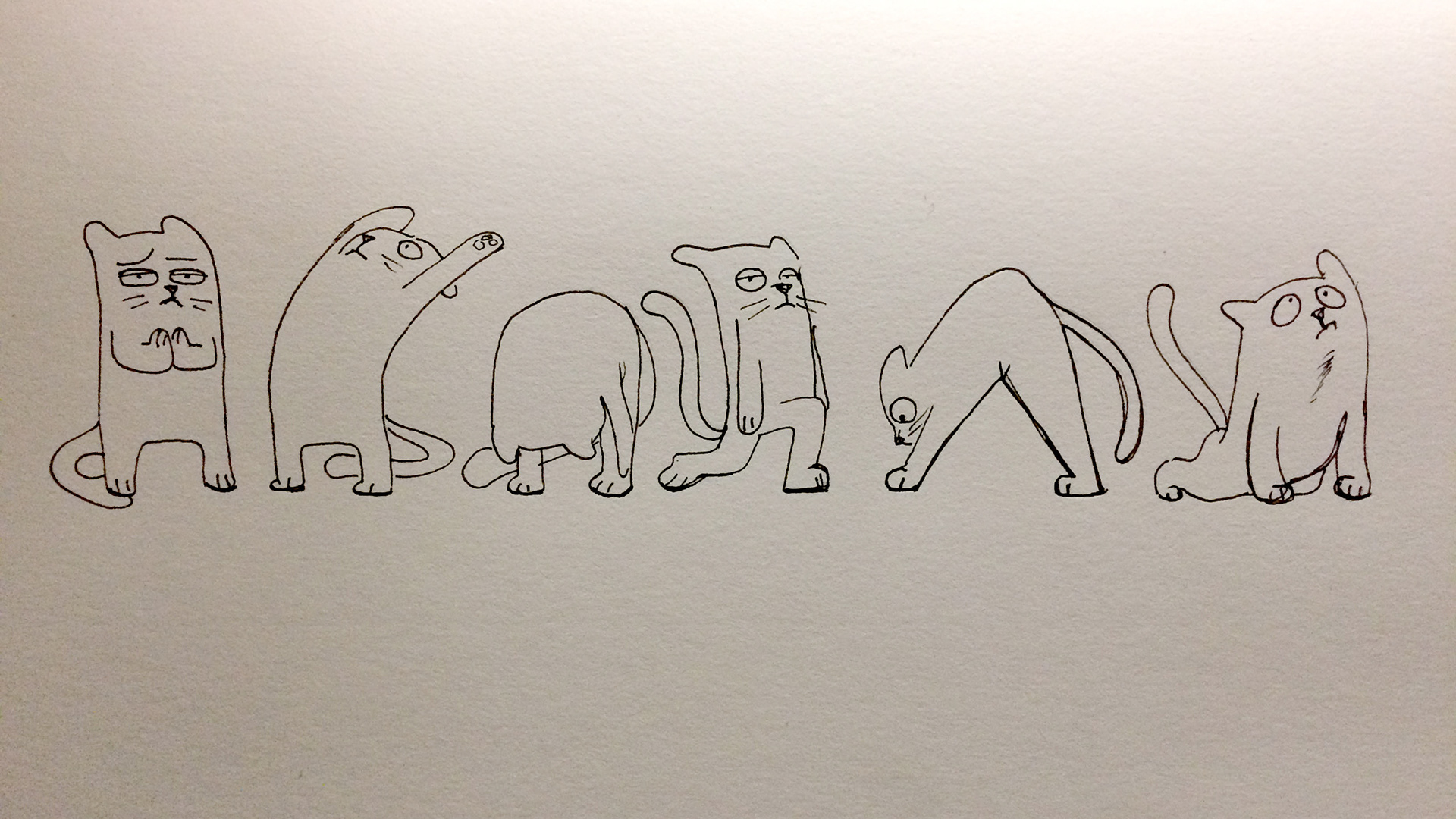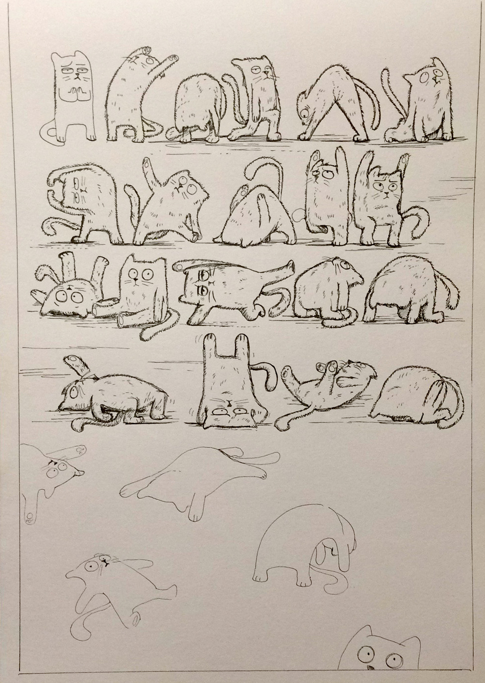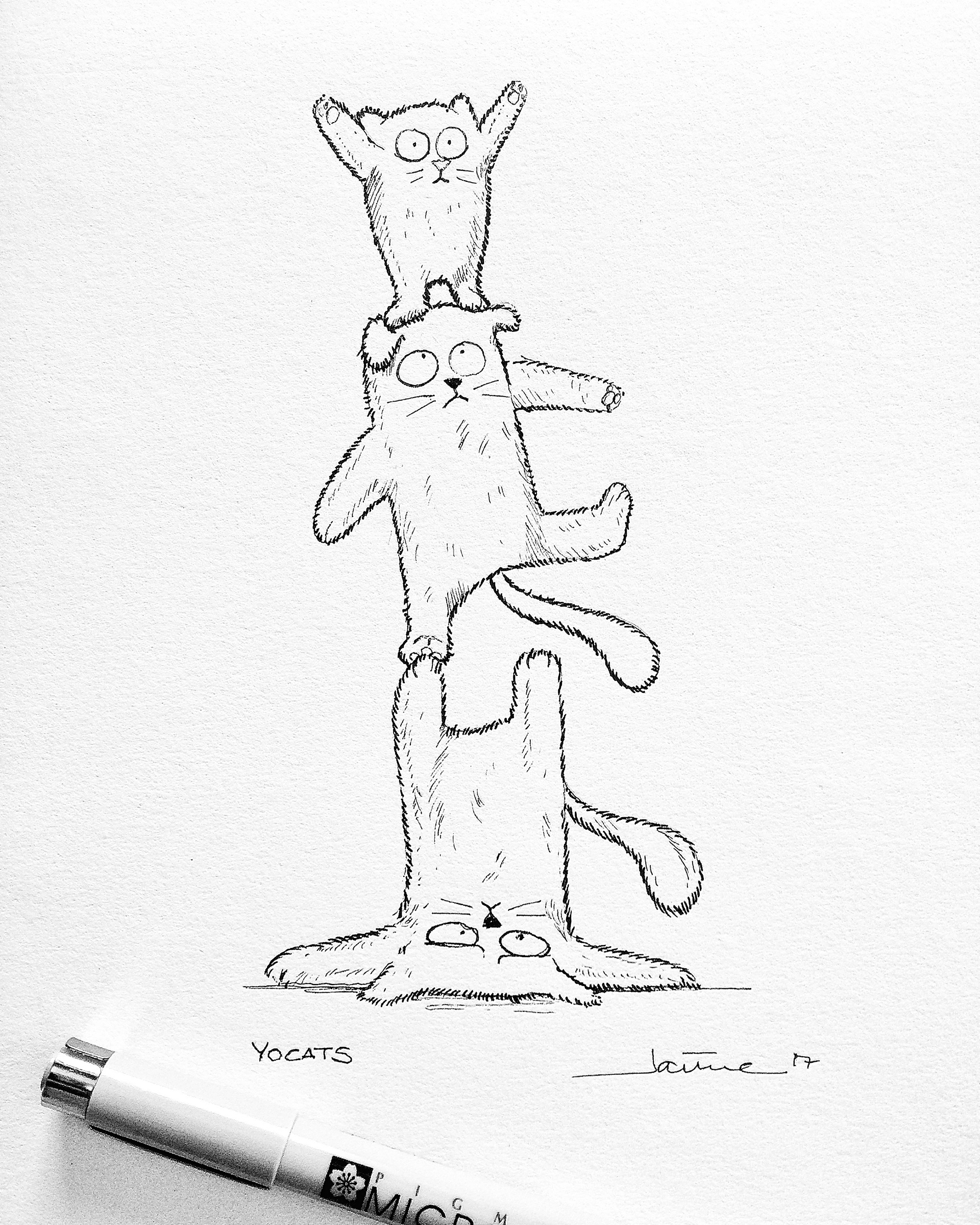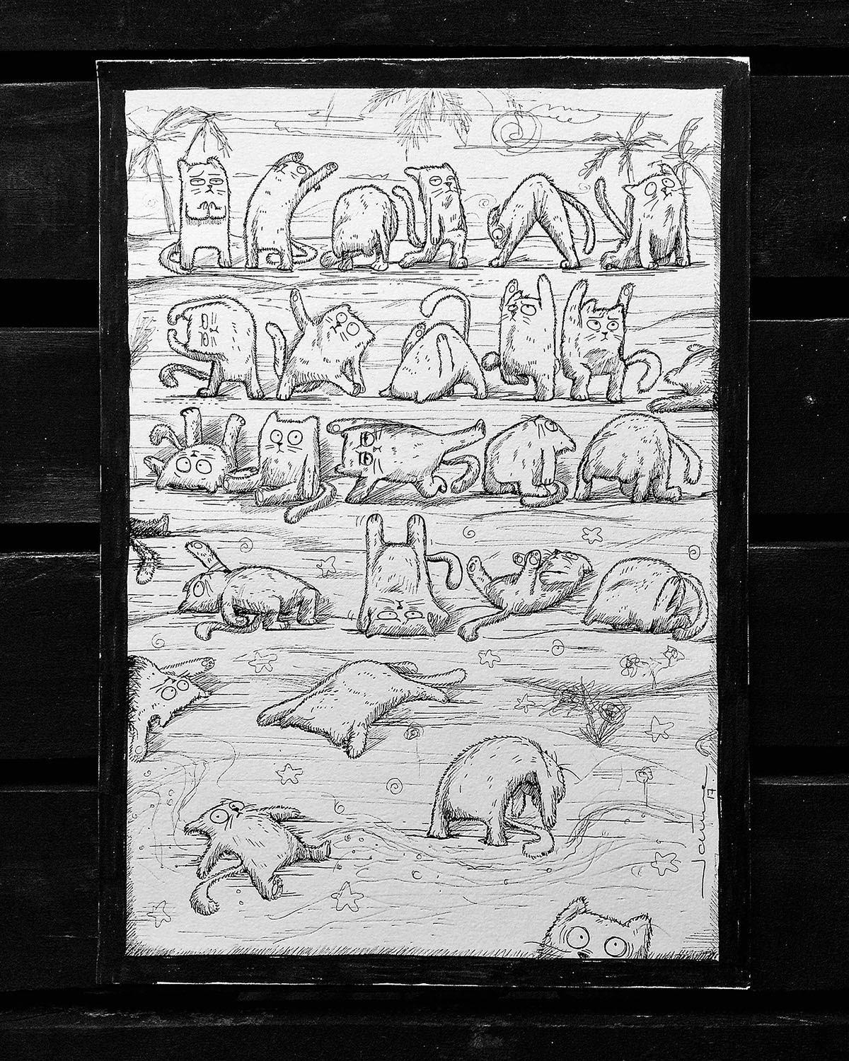 First of a series of drawings of this fun cats practising Yoga. Freestyle, no reference.